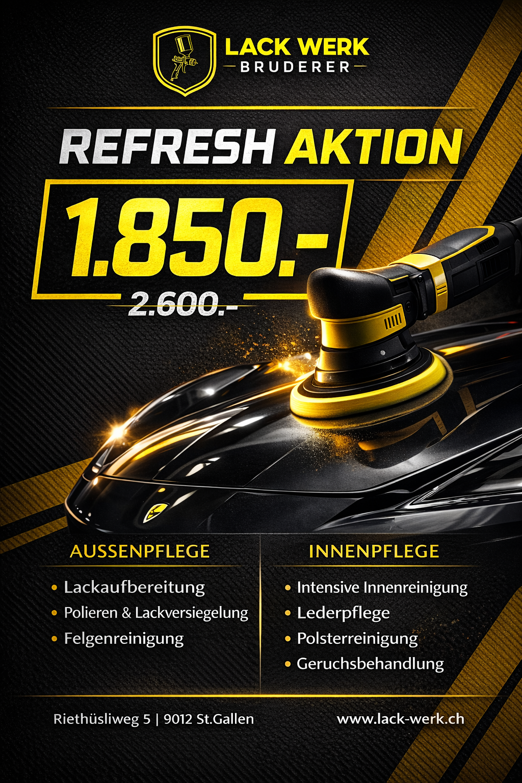 Neben Lackierungen aller Art, bieten wir auch Aufbereitungen, Folierungen und Scheibenverdunklungen an.